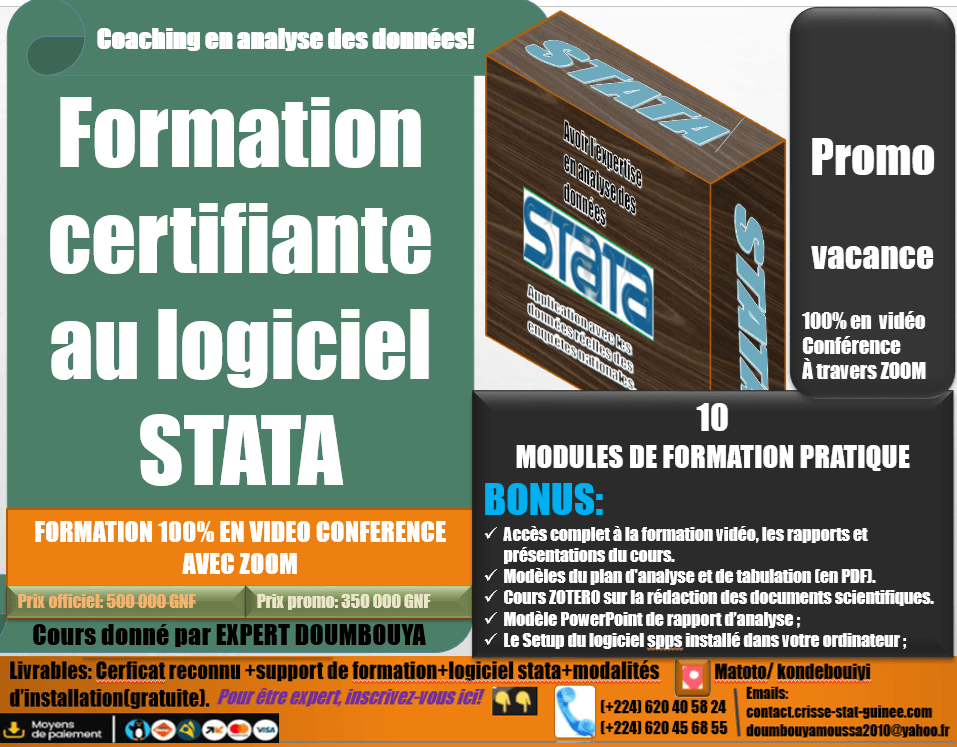 Grâce à cette “Formation en statistique appliquée sur stata à travers”, vous allez découvrir :